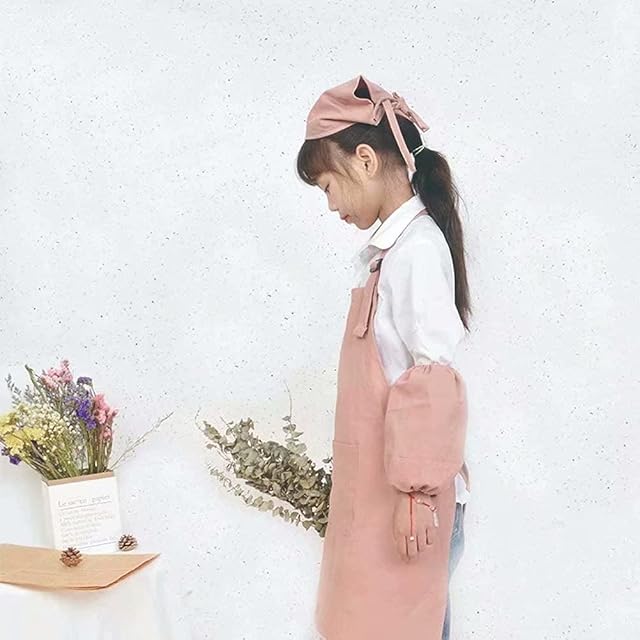[Uptyia] エプロン 子供 キッズエプロン 三角巾セット 女の子と男の子兼用 無地 シンプル 色落ちしない ホコリが付くにくい 親子でお揃い 小学生 料理教室 図工 絵画 陶芸