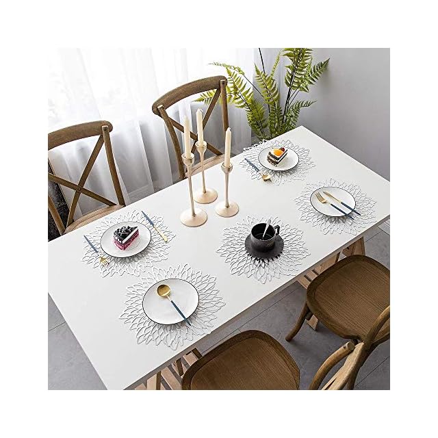 UNITRIP ランチョンマット ハイビスカス 6枚セット プレースマット PVC らんちょんまっと おしゃれ クリスマス飾り 北欧風 防汚 洗える(シルバー)