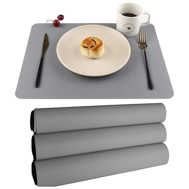 N/P シリコン ランチョンマット 4枚セット 食事マット シリコンマット 「30*40cm」食品級 耐熱「-40 Degree C-230 Degree C」防水 滑り止め 撥水 洗い可能 断熱 防汚 おしゃれ 無地 北欧風 (ライトグレー)