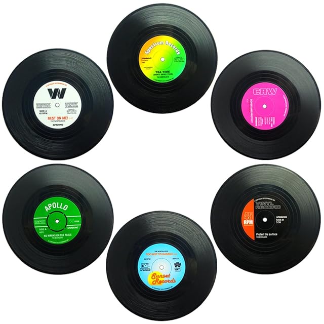 SENHAI コースター シリコン 6枚セット SENHAI おしゃれ レコード コースター シリコンコースター コップ用マット コーヒー ドリンク 滑り止め- 4.1inch