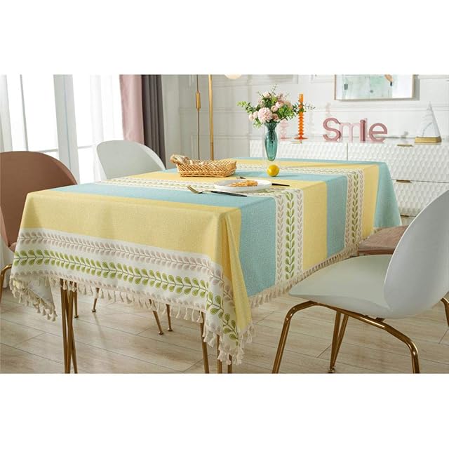 テーブルくろす 撥水 テーブルクロス 長方形 北欧 田園風 ステッチタッセル おしゃれ テーブルカバー ディナーピクニック 洗える ホーム装飾 ポリエステル 桌布 マルチサイズ 家庭用 業務用 新築祝い (100x140cm) | SMILE
