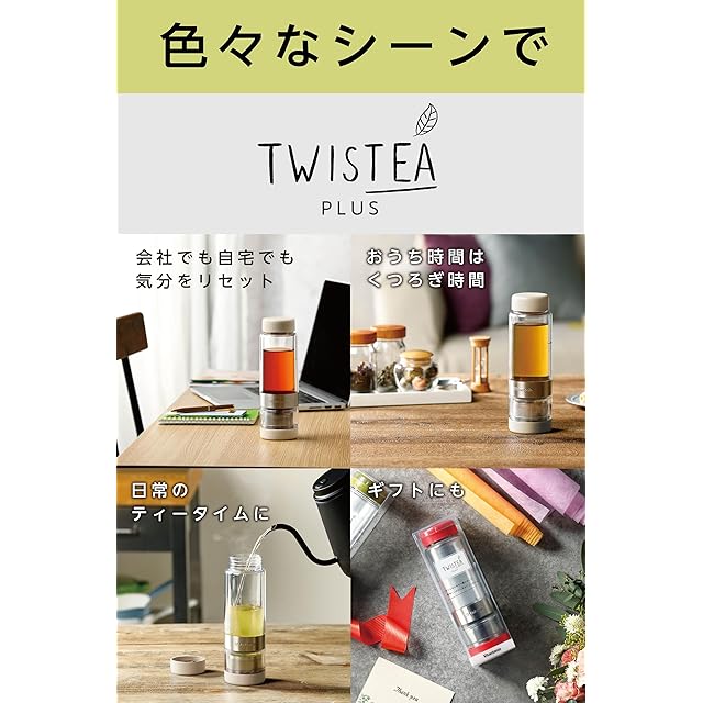 ✅【使いやすい!】ツイスティープラス(ティーボトル)にお湯を注いでひねるだけで、美味しいお茶が完成。茶葉の量や抽出時間を調整すれば「紅茶」「ハーブティー」「お茶」など自分好みの味が楽しめます。また再度弁を開けばお湯を注ぎたせるので、2煎目、3煎目も味わう日本茶や中国茶にも便利。都度、茶葉を取り出す手間がかかりません。忙しい毎日でも、手軽にリラックスタイムをお楽しみ下さい。