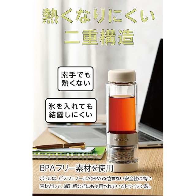 ✅【お湯出しや水出しにも対応】お湯出しや水出しにも対応。季節や茶葉に合わせて楽しめます。急須のような役割も果たしてくれるボトルです。トライタン製の二重構造なので、握っても熱くなりにくく結露も防ぐ事が可能です。季節問わず使える急須ボトルを、是非お試し下さい。