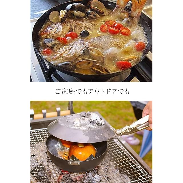 ✅【極めてサビづらくコゲつきにくい、鉄フライパン】鉄板の表面に「窒化鉄層+酸化鉄層」を形成させることで、極めてサビにくくコゲ付きにくい、かつ強靭なフライパンにしました。面倒なお手入れ(空焼き・使用後のシーズニング)もいらず、タワシでゴシゴシで完了する後片付けが簡単です。