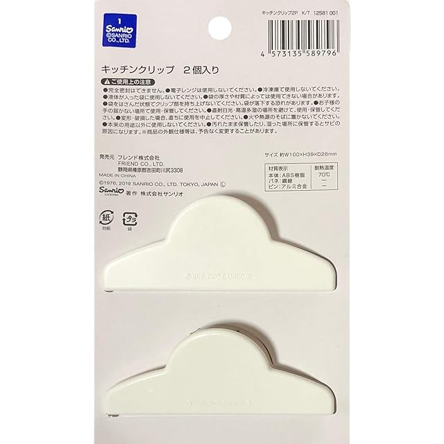 サンリオ ハローキティ プラスチックシーリングクリップ フードスナックバッグ 10×1.5インチ 2個セット キッチン
