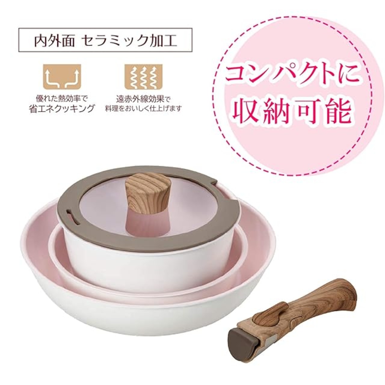 ベストコ フライパン 鍋 5点セット サクラホワイト セラティ セラミック ワンハンドル IH対応 取っ手のとれる ND-8183