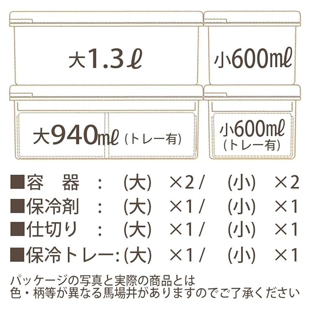 セット内容:容器(大)×2・(小)×2、保冷材(大)×1・(小)×1、仕切り(大)×1・(小)×1、保冷トレー(大)×1・(小)×1