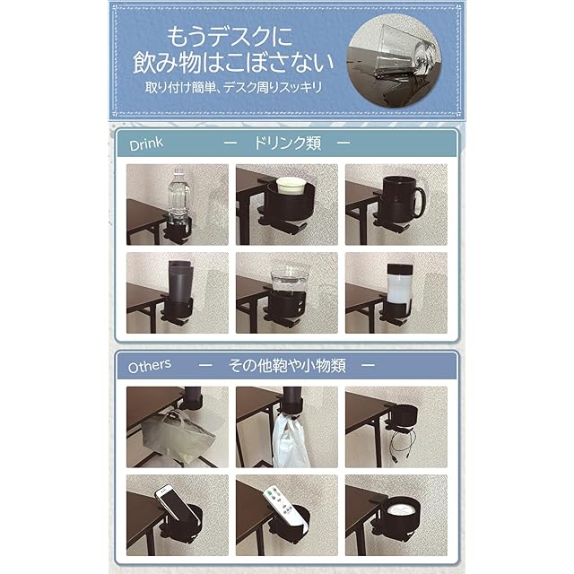 ✅【安全設計】飲み物の安定感を高める滑り止め機能が付いています。デスクの挟んだ箇所を傷つけないようシリコン製の材質の締め具を使用しています。