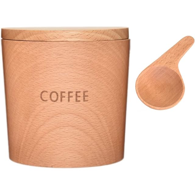 【商品説明】人気商品がセットになりました!天然木の美しい木目が特徴の【木のキャニスター(コーヒー)】とコーヒーを淹れる時にはかかせない【コーヒーメジャースプーン】がセットになりました。?(ブナ)の木から作られたキャニスター&メジャースプーン。メジャースプーンは挽いたコーヒー豆なら約5gを目安に作られています。キャニスターの中に入れて収納も可能です。