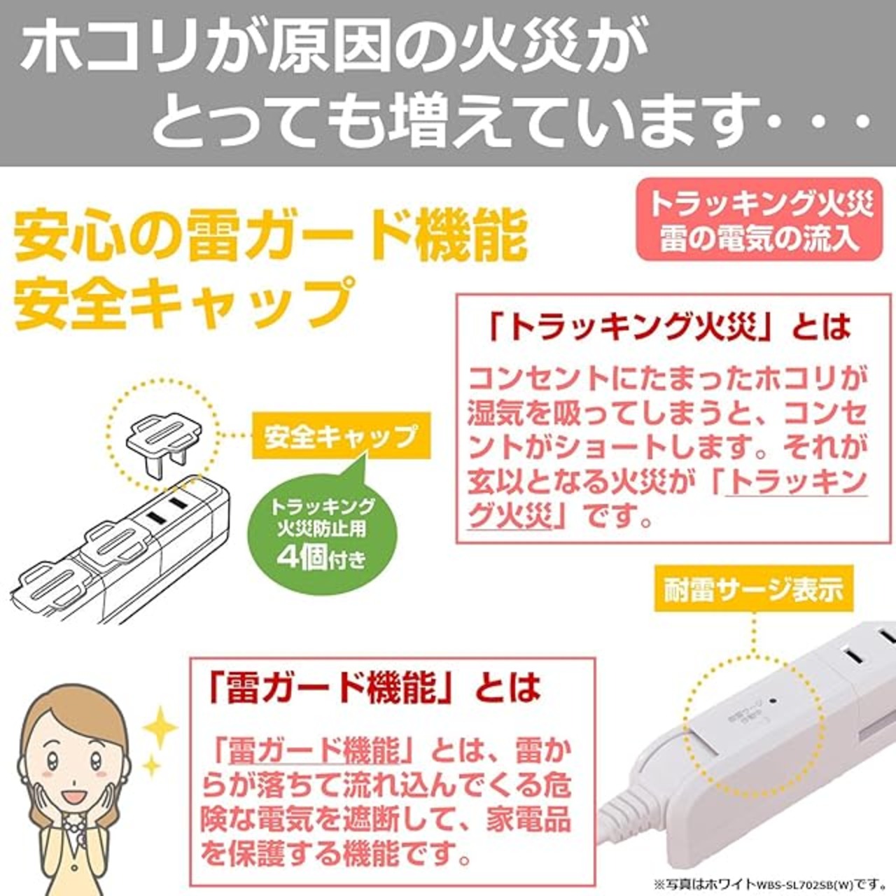 【便利な機能】雷サージ電流を防ぐ、雷ガード機能付きです。ホコリ防止カバーでトラッキング火災を予防し、プラグにもトラッキング防止被覆付きです。