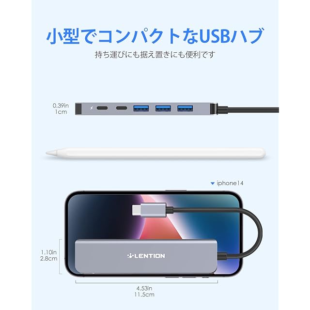 LENTION 6 in 1 USB C ハブ CB-CE35s 100W PD給電 USB 3.0 4K HDMI USB Type-C タイプc 変換アダプタ スリム 小型 電源 Mac MacBook Pro Air、iPad Pro Air、Surface Pro Goなど対応 (スペースグレイ)