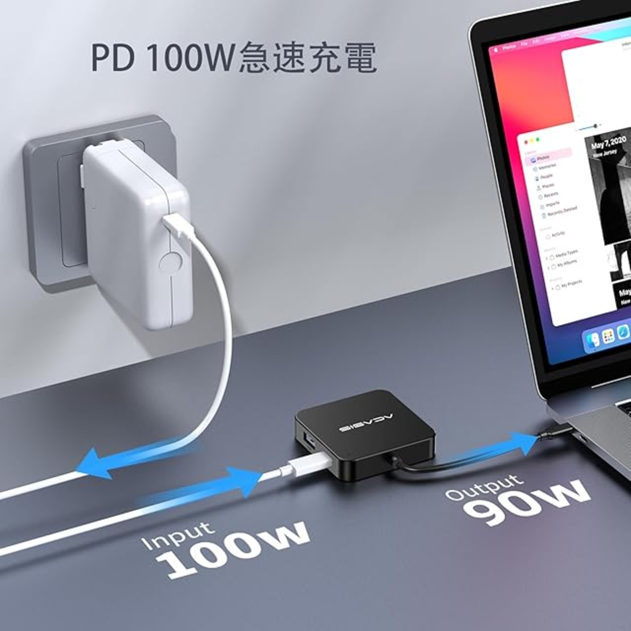 PD 100W 急速充電:100W 充電 USB C ポートを搭載し、他のポートを使用しているときに、ラップトップ/タブレット/電話を迅速に充電できます。