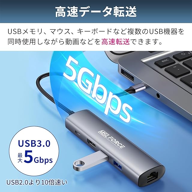 安心の日本企業 USB-C 5in1 多機能ハブ 5ポート 5Gbps USB3.0 USB2.0 4K@30Hz 急速充電 同時使用 多機能 Type-Cハブ データ転送 マルチディスプレイ ミラー 複製 PD100W HDMI uc0179-5 (5ポート, 1個)