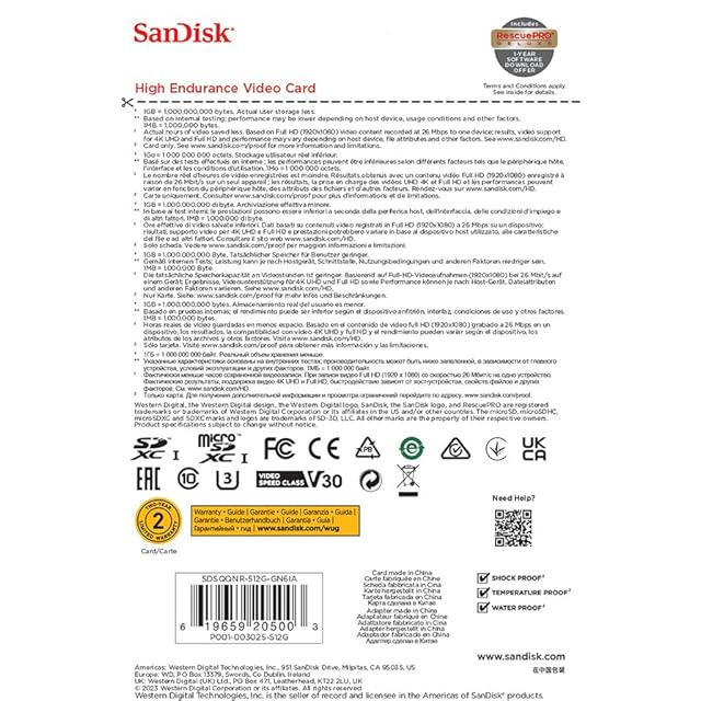 SanDisk 512GB 高耐久性ビデオmicroSDXCカード ダッシュカムおよびホームモニタリングシステム用アダプター付き - C10、U3、V30、4K UHD、Micro SDカード-SDSQQNR-512G-GN6IA