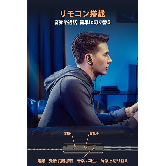 【マイク静音ボタン&便利なコントローラー】ゲーミングイヤホンはマイク静音ボタンが付きます。マイクOFFにする時、プライバシーを守ることができます。ゲーミングイヤホンにはインラインコントローラーが付属しており、ボリューム、マイクオン・オフを手で調節できます。1回押す:曲再生/停止/通話応答/終話 2回連続押す:曲送り 3回連続押す:曲戻し 長押し:Siriなど音声アシスタントに対応します。