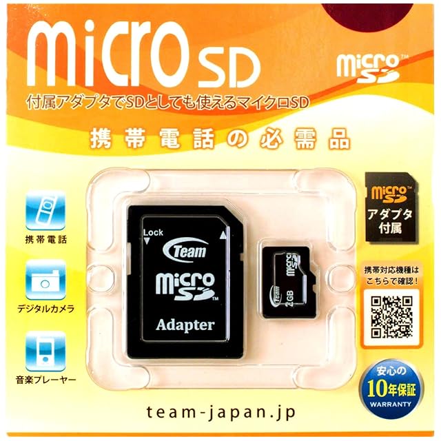 Team MicroSDカード 2GB SD変換アダプタ 動作電圧2.7V~3.6V 質量1g TG002G0MC1XA