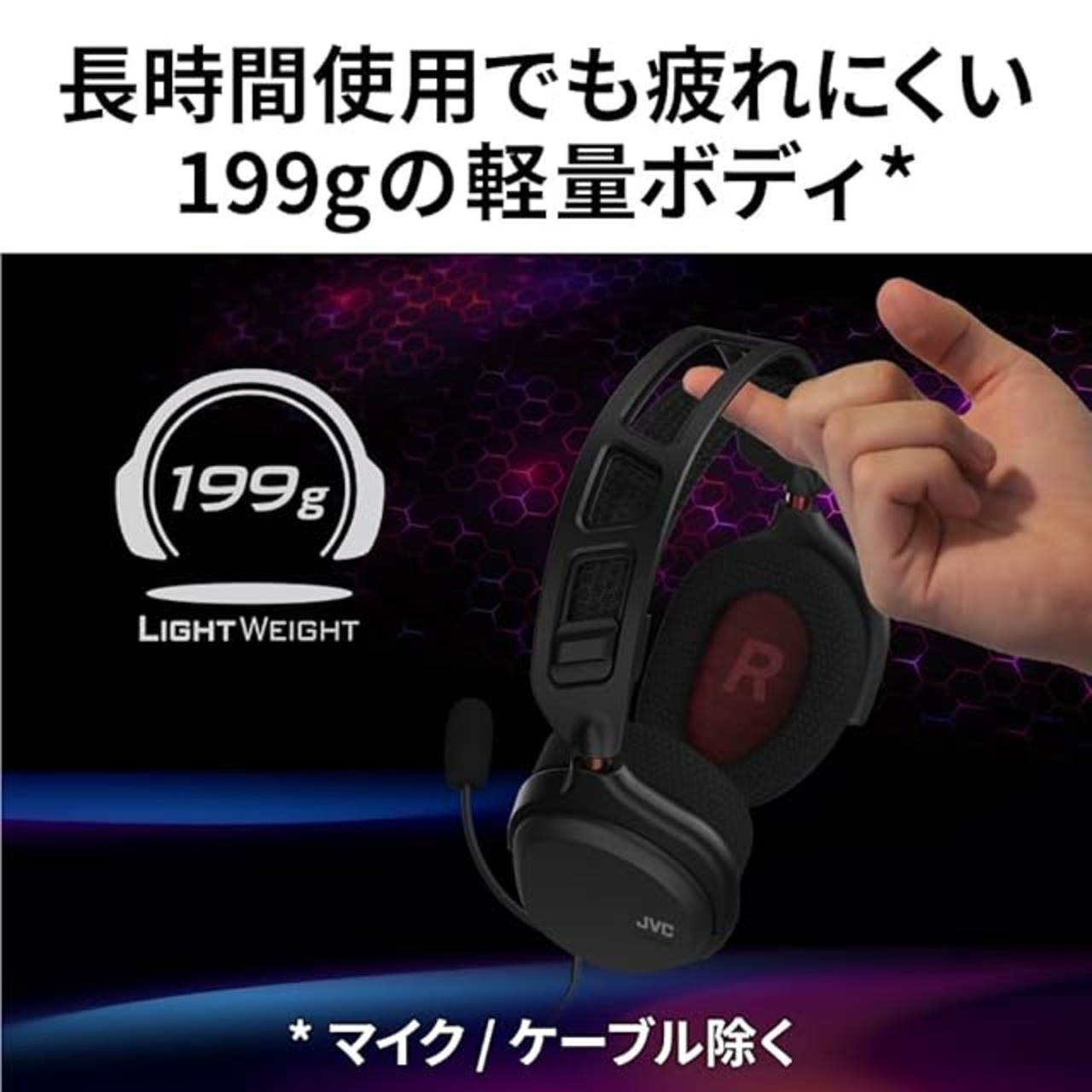 JVCケンウッド GG-01-B ゲーミングヘッドセット 本体質量約199g軽量ボディ ブラック