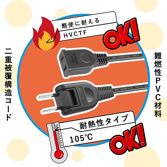 【PSE RoHS指令対応】電気用品安全法(PSE)技術基準適合電源ケーブルです。有害物質を含まない延長コード使用と、製造、使用、処分の各段階で人々の健康と安全を守ることに役立ちます。廃棄時に環境への悪影響を最小限に抑えることができます。