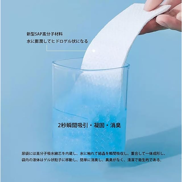 男女兼用で老若男女子供が使用でき、立ったまま座った状態で使用でき、使い方も非常に簡単で使いやすく、使い終わったら、シールファスナーをしっかりと閉じて、1-2分でゲル状に固まり、逆に漏れもなく、匂い移りも防止できます