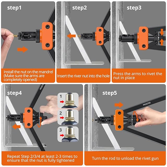【六つの交換可能なガンヘッド】六つの交換可能なガンヘッド(M3、M4、M5、M6、M8、M10)、150個のリベットナット(40*M3x9mm、40*M4x11mm、30*M5x13mm、20*M6x15mm、15*M8x18mm、5*M10x21mm)を付属しています。高品質の素材で、丈夫で耐久性があります。仕事のニーズを満たします。