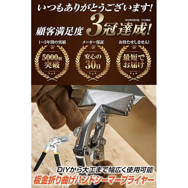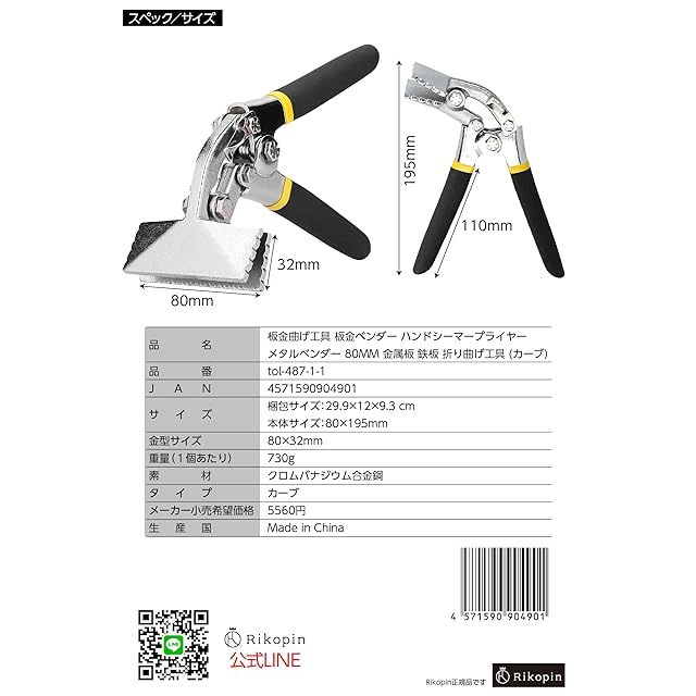 アルミ板や銅板など板金を手軽に折り曲げるためのハンドシーマープライヤーです。