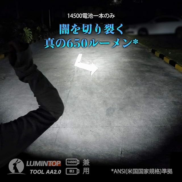 Lumintop LED小型懐中電灯明るさ最大650ルーメン5段階のライトモード(ターボ /高/中/ 低/ストロボ )機能を搭載 単三電池一本ても最長60時間まで連続点灯できます IP68防水、耐衝撃性1.5メートル直径8.9*1.85cm Tool AA 2.0