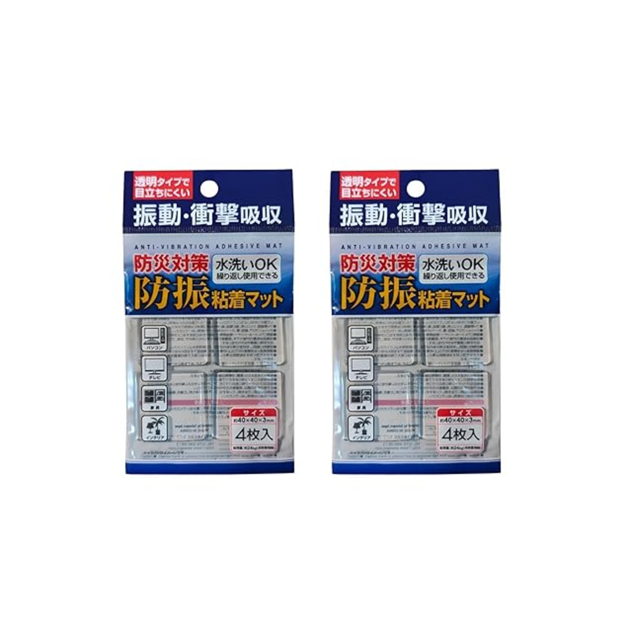 透明タイプで目立ちにくい! 防災対策! 防振粘着マット(4枚入り) (2袋)