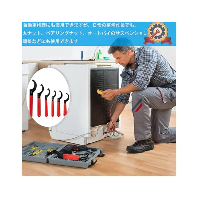 </br>※「使用法」 </br>フックスパナは、スパナ頭ねじ、ねじリング、シャフトを駆動するように設計されています。 溝やピン穴に爪を入れ、 てこの原理を利用して締め付ける工具です。 </br>※「幅広い用途」 </br>ER-Cタイプのスピンドルを締めるために使用します。機械ナットの回転時間を延長します。ER旋盤クランプナット、彫刻機スピンドル、CNCフライス盤チャック、スプリングクランプナット、丸ナット、軸受用ナット、CNC工具ホルダーなどの取り付け、取り外し作業にほとんど適しています。 </br>車の車高調、バイクのステアリングヘッドなどに広く使用されている。 </br> </br>※「製品パラメータ」 </br>適用ナットサイズ:APU13,APU16,ER25,ER32,ER40,C32 </br>全体のサイズ:APU13:170 x 4mm,APU16:190 x 4mm,ER25:190 x 5mm,ER32:210 x 5mm,ER40:230 x 6mm,C32:260 x 6mm </br>開口部幅:APU13:45mm,APU16:50mm,ER25:37mm,ER32:45mm,ER40:57mm,C32:63mm </br>素材:高速度鋼 </br>硬度:48-52HRC </br>ハンドル材質:ゴム </br>仕上げ:黒色酸化 </br>ご注意ください:手作業による測定のため、1〜2mmの誤差を許してください。 </br> </br>※パッケージ内容:6Xフックレンチ </br> </br>※Yuentoenについて </br>Yuentoenは、お客様のショピング体験を重視しています。高水準な商品とアフターサービスを提供するように頑張ります。 </br>万が一製品に何か不都合がございましたら、お気軽に弊社にご連絡くださいませ。こちらはいつでも喜んでお客様のために尽力して対応しております。