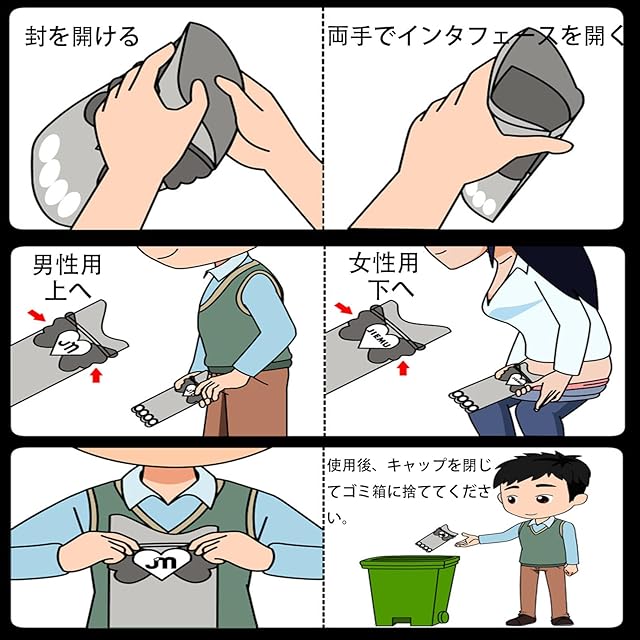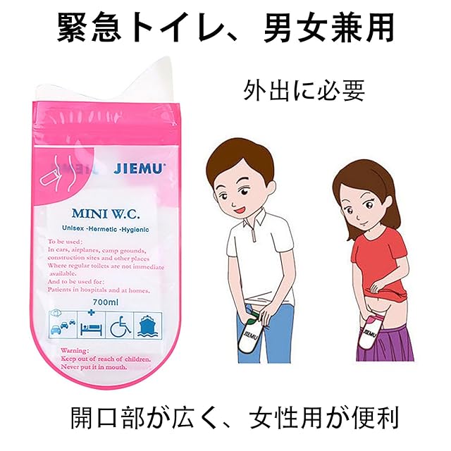 【大容量・男女老若兼用】使い捨て携帯トイレの容量が大きくて、700mlがあります。2回以上の使用が可能です。男女兼用の設計で、男性、女性、子どもや患者さんが適用可能。女性にも使いやすくて、立ったままで使用可能、非常に便利です。