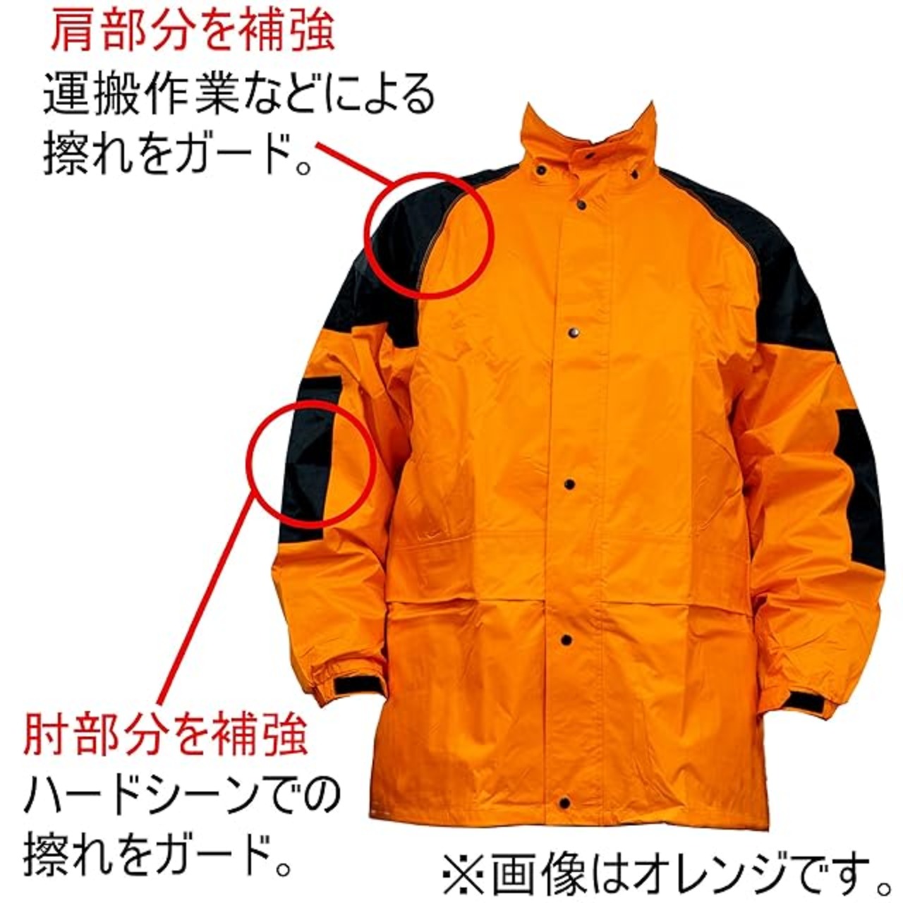 高い耐久性でハードワークをサポート!オックスフォード採用! 【背面に反射テープ装備】夜間作業でも安心です。【肩、肘、膝部分に補強あて付き】運搬作業、ハードシーン、地面との接触などでの擦れをガード。【視界のよい透明フード】頭部や首回りへの風雨の侵入もカット。【ファスナー開閉タイプの裾】ワークブーツ、登山靴の脱着もスムーズなファスナー開閉タイプ。フラップにより水滴の侵入をガード。【防水、耐水圧10000mmH2O】