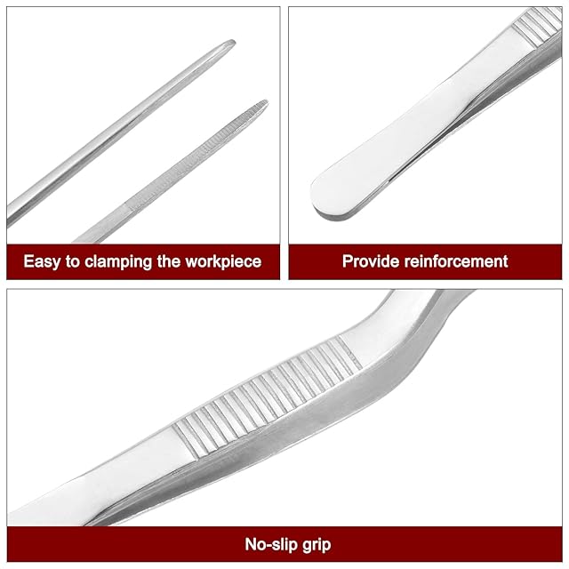 素材 - オフセットピンセットトングはステンレス鋼製で、高温耐性、防錆性、強い硬度、研磨された表面、お手入れが簡単です。ピンセットチップにあるパッドは補強を提供し、ピンセットをより快適に使用できるようにします。
