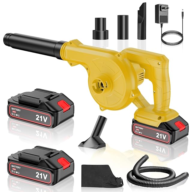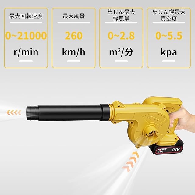 ブロワ 充電式ブロワー スブロワー 大風量 コードレ トリガー風量調整 軽量 集塵 無段変速 バッテリー専用電動工具 手持ち式 風圧5.5kPa 回転数16,000min-1 風量3.5m3/min 軽量1.7k 集じん機能付き 吹き飛ばしと集じんの1台2役 互換マキタ18バッテリー専用 車両やバイクの乾燥 掃除ブロワー 庭木や落ち葉の掃除 庭掃除 除雪(yellow-400) | SMILE