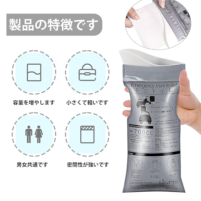 ポータブルトイレ、男女兼用、緊急ミニトイレ、消臭渋滞/介護/防災/地震/700 ccよじ登る瞬間吸収(5回使用)