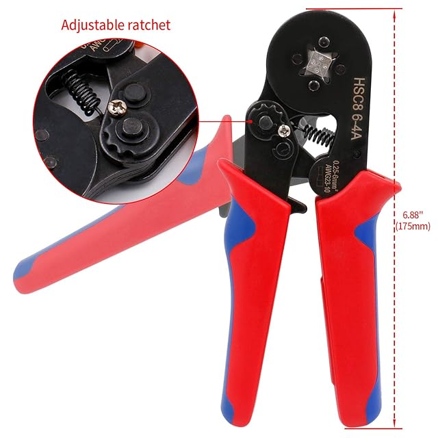 Heschen クリンパープライヤー, HSC8 6-4A, 0.25-6.0 mm² (23-10 AWG) スクエアフェルールワイヤケーブルエンドスリーブに使用するミニ自己調整式圧着ツール, レッド