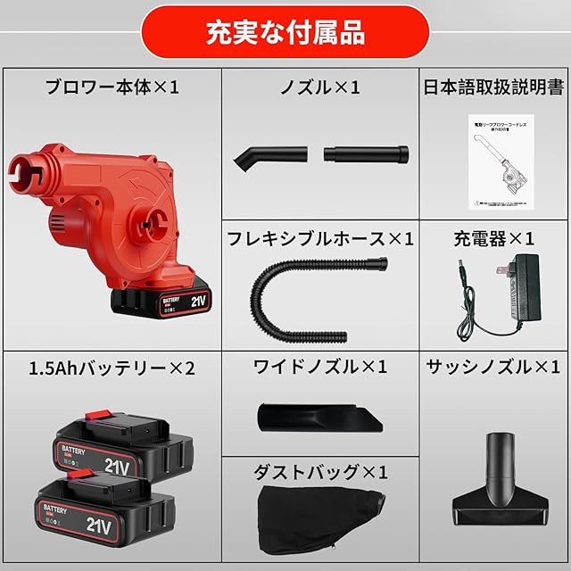 ブロワ 充電式ブロワー スブロワー 大風量 手持ち式 軽量 集塵集じん機能付き トリガー 風量調整 無段変速 コードレ 吹き飛ばしと集じんの1台2役 回転数16,000min-1 風圧5.5kPa 風量3.5m3/min バッテリー専用電動工具 互換マキタ 18バッテリー専用 軽量1.7k 車両やバイクの乾燥 庭掃除 掃除ブロワー 庭木や落ち葉の掃除 除雪(red-05)