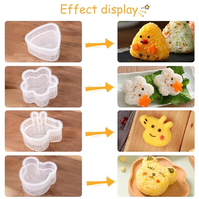 ❤【安全安心材料】安全で無害なプラスチック素材で、表面はノンスティック加工されており、ご飯が型にくっつくのを防ぎ、安全で耐久性があります。 簡単にかわいい寿司おにぎりが作れます。