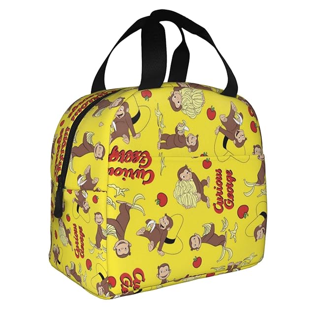 おさるのジョージ 保冷 がま口 ランチバッグ ブラック お弁当箱 保温 保冷バッグ ファスナー付き コンパクト お弁当袋 ソフトクーラーバッグ トート・エコバッグ