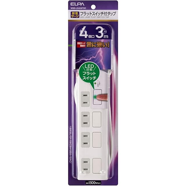 ●雷から接続機器を守る耐雷サージ機能付 ●LEDランプ仕様 独立スイッチ ●ホコリ防止の扉付 ●スッキリ配線できるスイングプラグ ●トラッキング火災を予防 ●コードは保護被ふく付安全構造