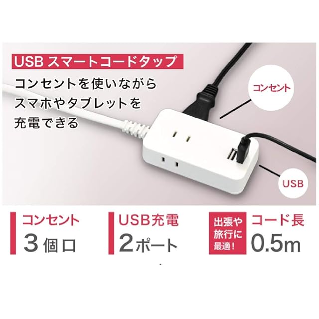color:0.5m style:AC3個口/USB2ポート: