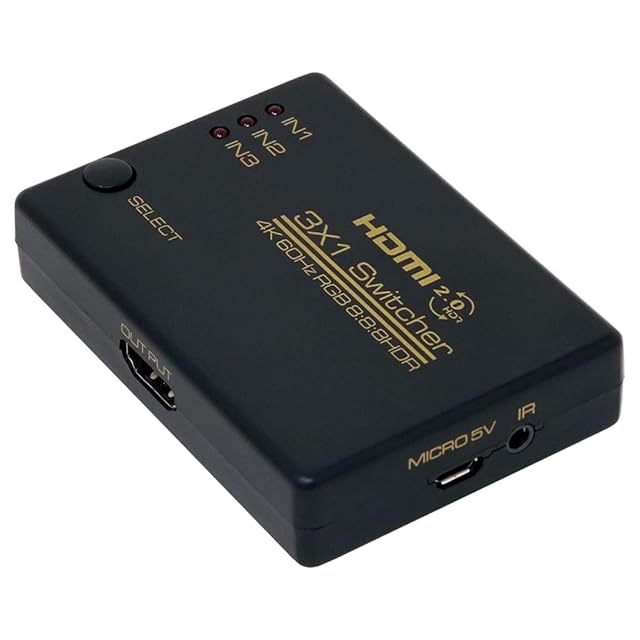 コネクタ形状: HDMI メス (タイプA 19ピン)×3⇔HDMI メス (タイプA 19ピン)×1、サイズ: W80×D58×H18mm、カラー: ブラック