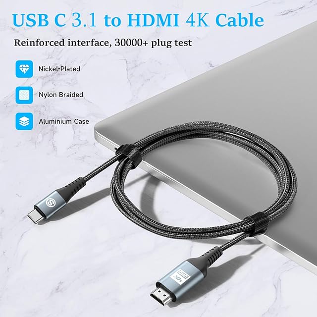 HDMI Type-C 変換ケーブル 6m, USB C からHDMI 接続ケーブル 【4K UHD映像出力 】タイプc HDMI 変換ケーブル Thunderbolt3対応 設定不要 携帯画面をテレビに映す iPhone15/iPhone16 Pro Max,MacBook Pro Air/iPad Pro 2020/Surface Book/Galaxy S21 S20等対応-グレー | SMILE