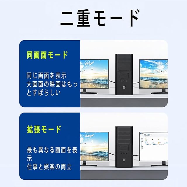 【ミラー と 拡張モード】HDMIポートを持つモニターが拡張ディスプレイとして設定可能で、仕事場でも活躍しますミラーモードで大画面のワークスペースで仕事をしたり、プレゼンテーションを発表したりすることができますまた、拡張モードで画面を分割し、仕事とエンターテインを同時に行えます。