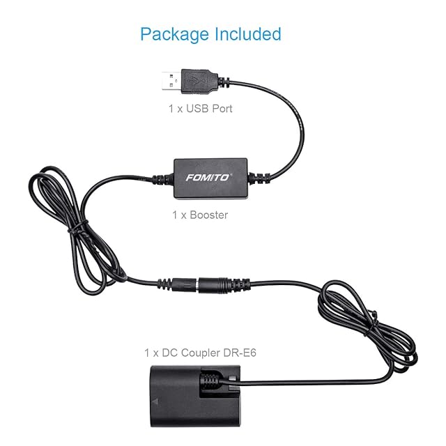 FOMITO DCカプラー DR-E6 ダミーバッテリー USBポート FORキャノンカメラ