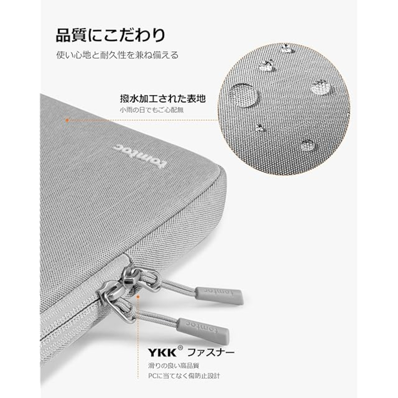 【品質と性能の両立】高品質の撥水加工されてエコ材表地、安心のYKK製両開きファスナー、裏生地の洗練されたライン模様、及びしっかりとした作りでMacBook用ケースの最高レベル達成。環境保護の責任を役たすために、このパソコンケースはプラスチックの再生材表地を使用することにより、何十万の廃棄ペットボトルをリサイクルして利用しました。