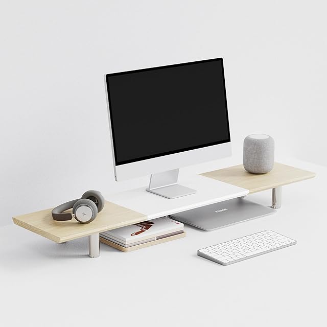 Fenge モニター台 机上台パソコン台 机上ラック 幅100cm 木製天板 高さ調整可能デスクトップ用 机上 モニタースタンド 机上台 pcモニター台 パソコンラック 卓上 収納 整理整頓 ホワイト+オークG04E1103C | SMILE