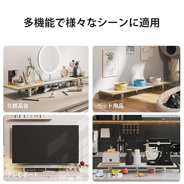 耐荷重45KGの堅牢性、安定性】机上台は4本の足(直径3cm)で天板をしっかり支え、安定性が抜群です。厚さ1.8cmの板で作られたモニタースタンドは最大の耐荷重はなんと45KGです。机上台の下の奥サイトに支柱を設置して、耐荷重を確保するだけでなく、収納の邪魔にもなりません。