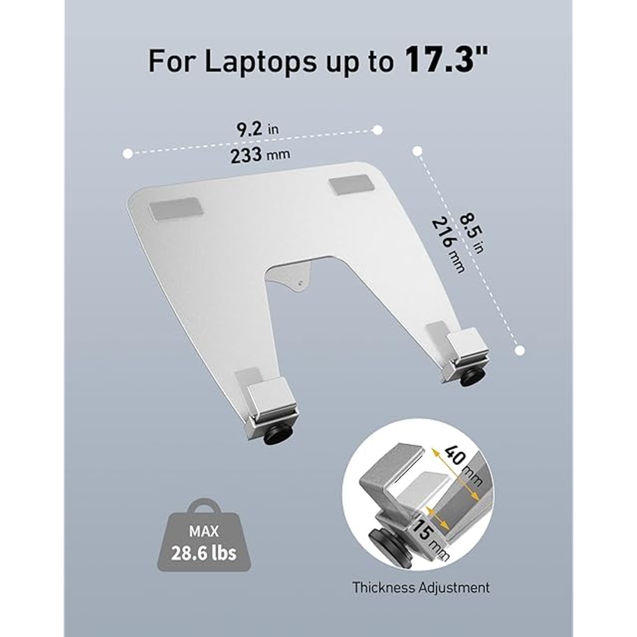 【幅広い互換性】: このノートブックトレイは、100 x 100mm VESAパターンホールを備えたほとんどのVESAマウントに最適です。28ポンド以内の6インチから17.3インチのノートパソコンと互換性があります。