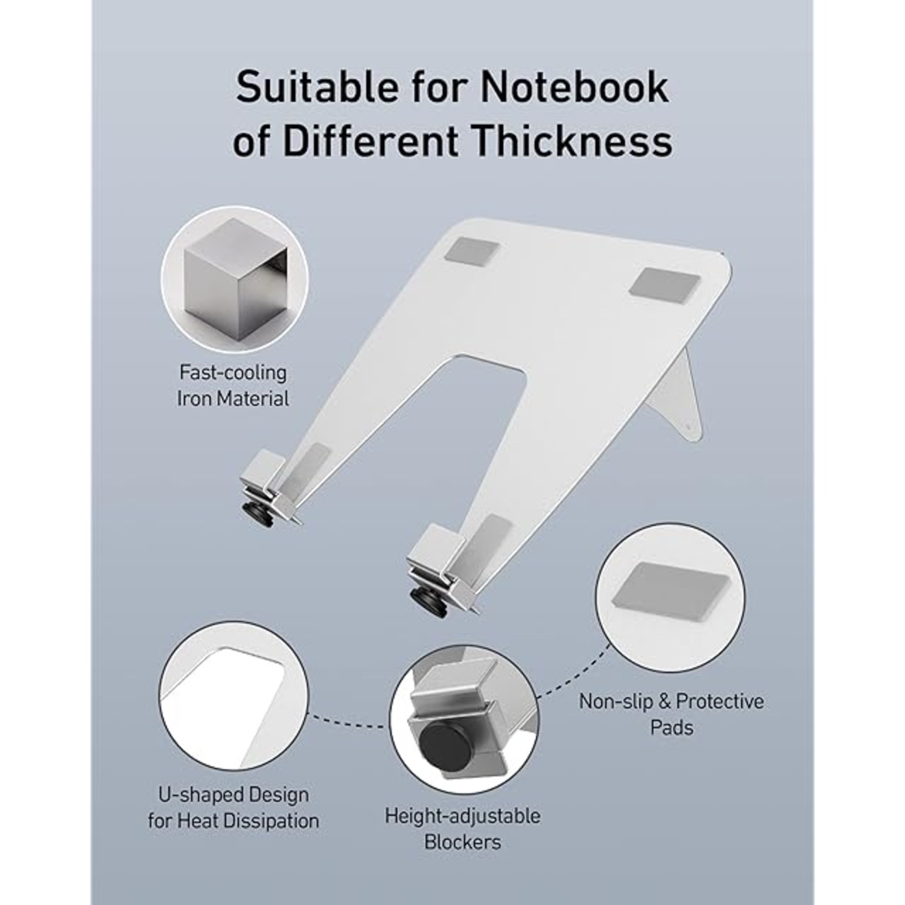 【L字型ブロッカー】: 下部の縁と滑り止めパッドがデバイスをしっかりと固定し、ノートパソコンが滑ったり落下したりするのを防ぎます。 仕事に没頭しましょう!
