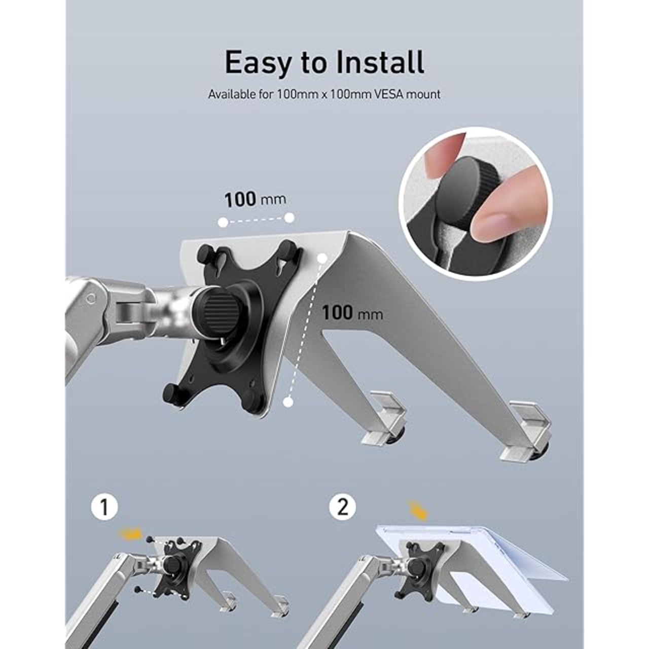 ergounion VESAノートパソコントレイ モニターアーム用 - 100x100mm VESAマウント 最大17.3インチのノートパソコン、ノートブック、タブレットの画面用アームマウントトレイ - ノートブックトレイ オフィスデスクアクセサリー - シルバー