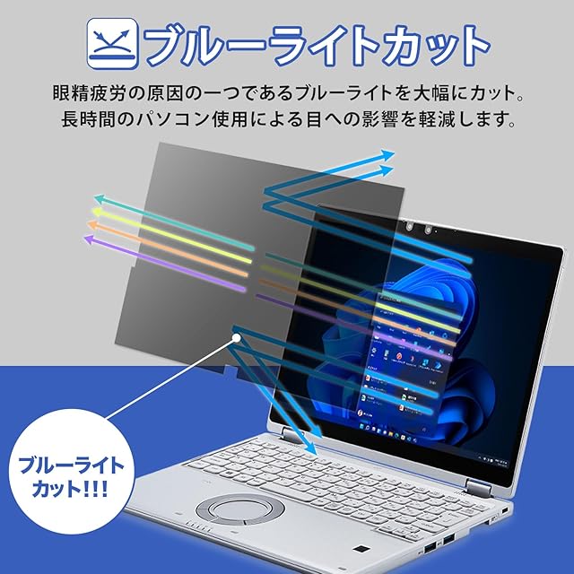 ◎ブルーライトカット:目に有害なブルーライトを49% そして紫外線を99.9%カットすることによって、目の負担を軽減できるので、let's noteのパソコンで長時間作業される方にもおすすめです。◎指紋防止:指紋や汚れを防ぎ、画面をしっかり保護し、レッツノートを清潔に保ちます。 ホコリが付着しにくい帯電防止仕様を持ったフィルムです。